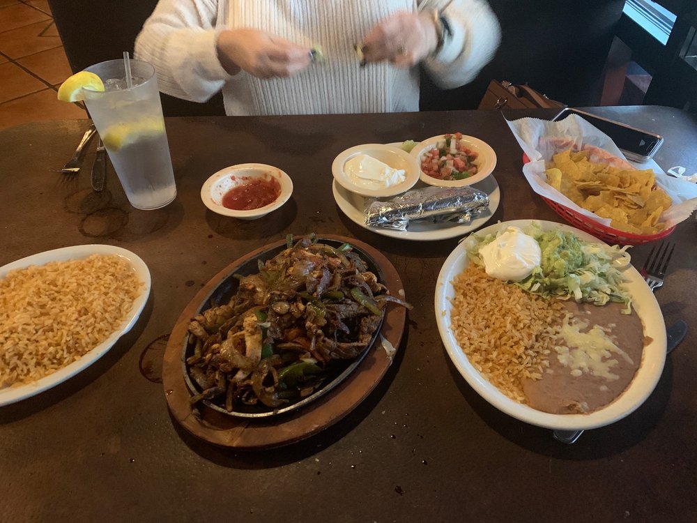 Crispy tortilla bowl filled with chicken or steak strips cooked with bell pepper, tomato and onion. Topped with lettuce, cheese, tomato, guacamole and sour cream.