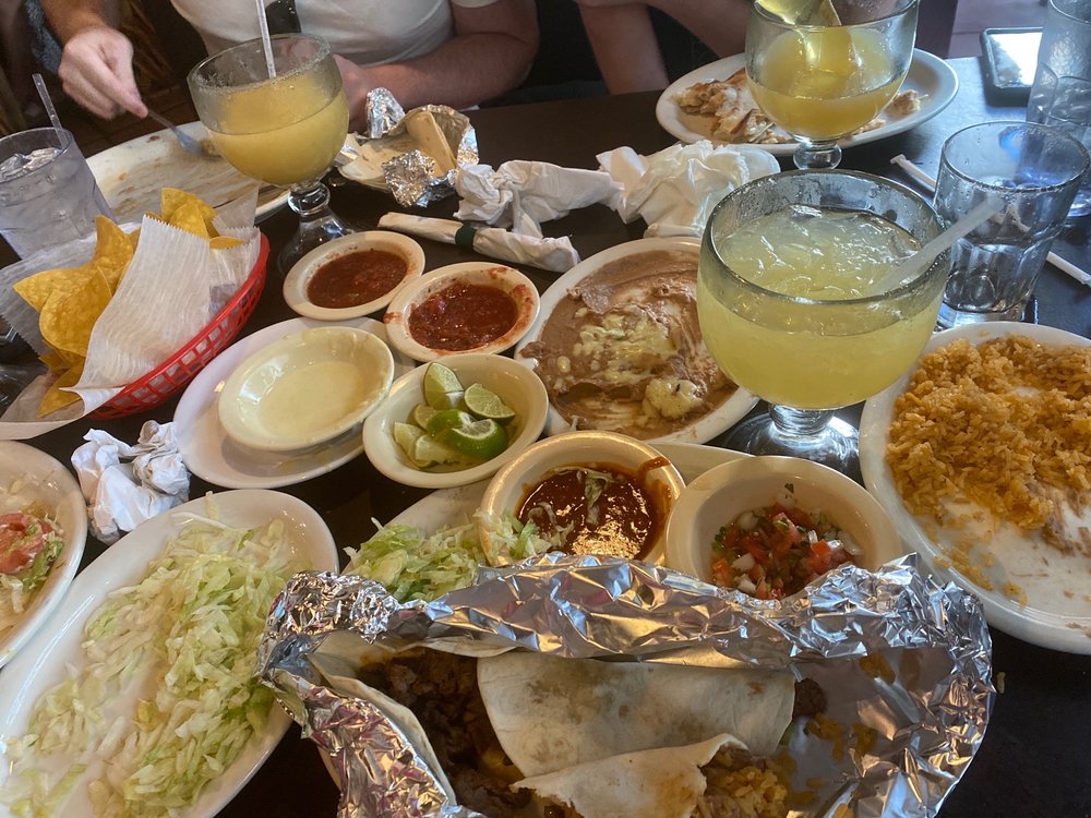 Beef burrito covered with cheese dip. Served with lettuce, sour cream, tomato and cheese
